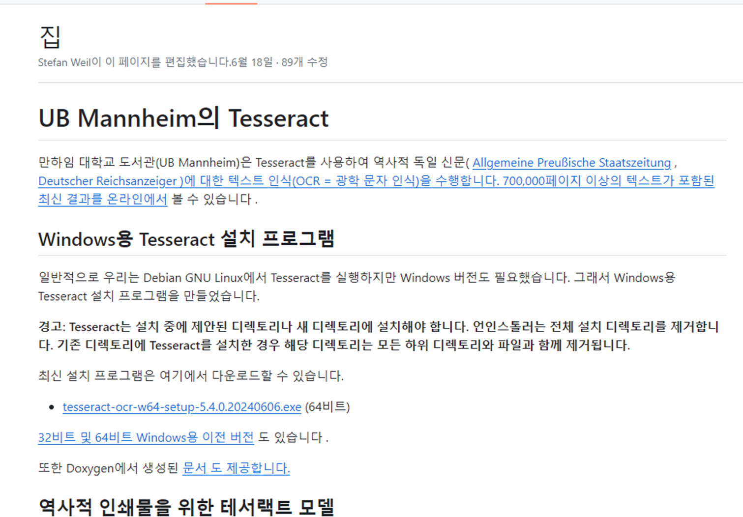 - https://github.com/UB-Mannheim/tesseract/wiki 를 다운로드