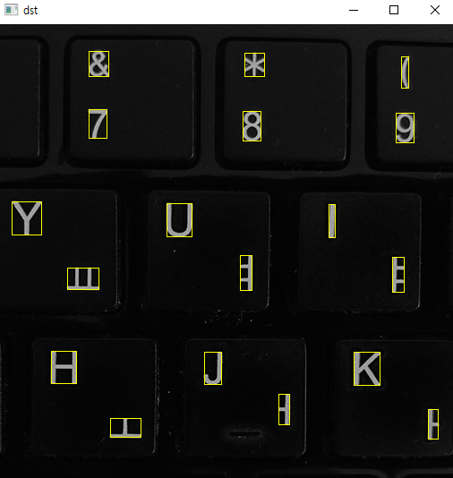 cv2.rectangle(dst, (x, y, w, h), (0, 255, 255)) # garyscale에선 색상 못넣음 ->cvtColor사용 변환