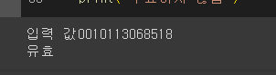 - 결과값이 마지막 주민등록번호와 일치하면 유효한 주민번호