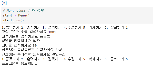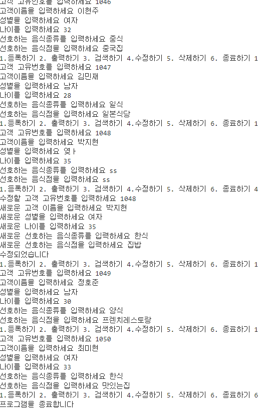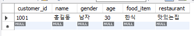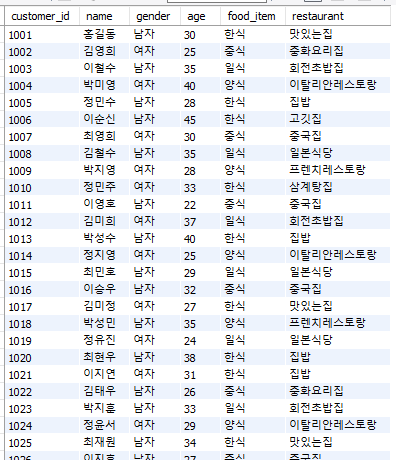 data = (word.getCustomer_id(), word.getName(), word.getGender(), word.getAge(), word.getFood_item(), word.getRestaurant()) #반환값 변수 설정