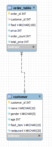 #customer_id가 table 2개 연결점(primary key-foreign key 연결)