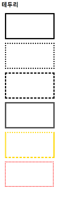 - border-style(테두리 모양), border-color(테두리 색상), border-width(테두리 두께)