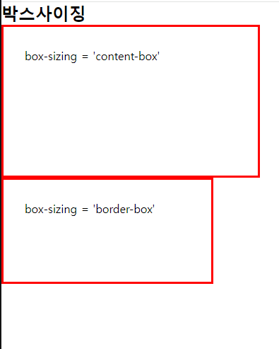 - box-sizing 속성값을 border-box로 설정하게 되면 width와 height값에 padding과 border를 포함합니다.