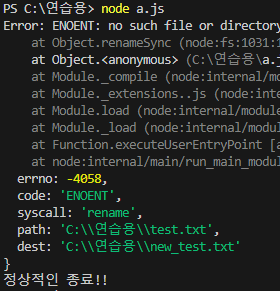 console.log('에러발생 후 정상적인 종료!');
