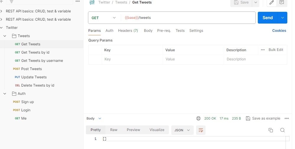 postman으로 오류발생시, router > tweet.js파일, controller > tweet.js 파일, data > tweet.js 파일에서 함수이름, argument이름 확인하시면 됩니다.