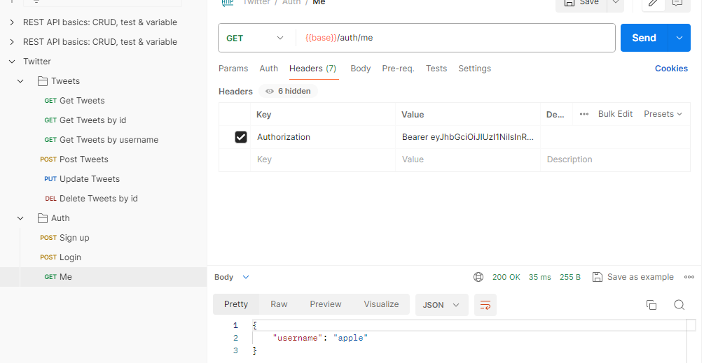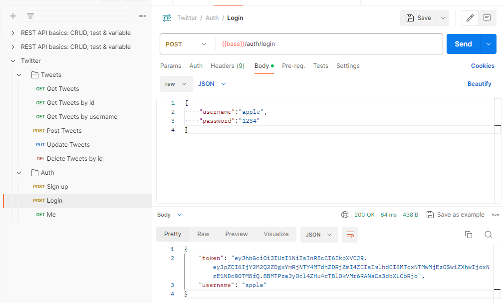 auth폴더를 postman으로 미들웨어 요청방식이 작동하는지 확인하기: